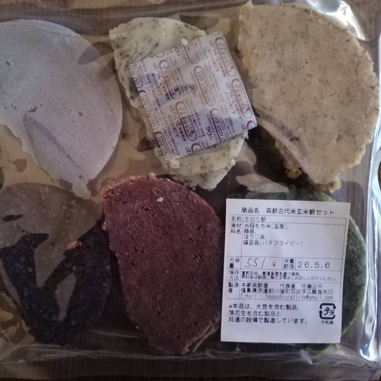 このセットでは、煎茶餅、碾茶抹茶餅、ほうじ茶餅、蝶豆茶(バタフライピー)餅の4種類と、鳥取県からの古代米玄米(赤米、黒米)を使用した餅を取り揃えています。見た目にも美しい色合いとともに、それぞれの茶餅が持つ独特の風味と古代米の素朴な味わいを楽しむ新しい体験が待っています。